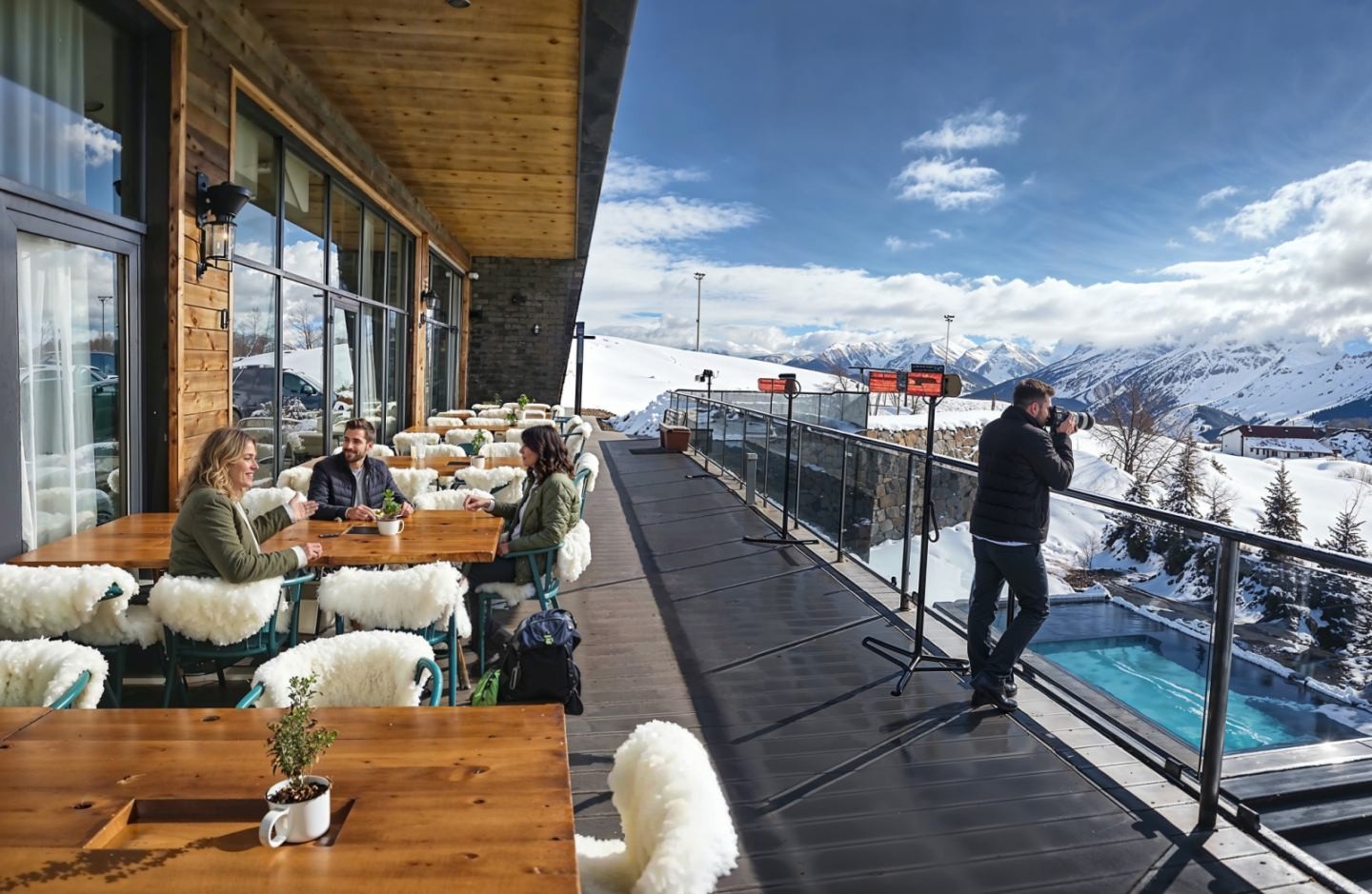 المطعم تابع لفندق ( غوداوري لوفت )، الواقع في منتجع( غوداوري الشتوي ) في جورجيا. توسعت مساحة المشروع من 215 مترًا مربعًا إلى 360 مترًا مربعًا، ليضم عدة مناطق ترفيه، منها قاعات جلوس متنوعة، ومطبخًا ، وركن بار، ومدفأة، ومسرحًا. يتميز المشروع بتفاصيل عصرية وراقية، تجعله فريدًا من نوعه، ويحمل اسم ( أفياتور ) وموقعه المميز.