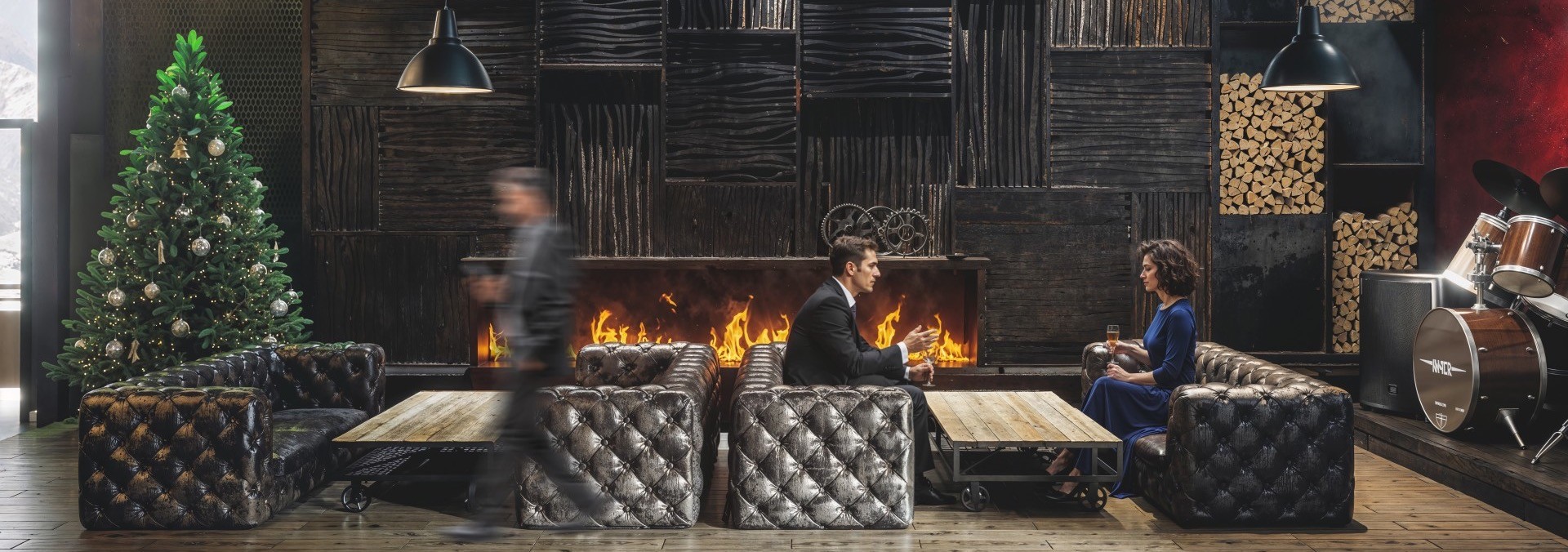 تتميز التصميمات الداخلية البسيطة والمقتضبة بأثاث عتيق عملي. فواصل معدنية مزخرفة مصنوعة يدويًا، وأعمدة خرسانية، وبار من الحجر الطبيعي، ومدفأة معدنية أصلية مصنوعة خصيصاً، تخلق تجربه لا تُنسى. ويكمن المفهوم الرئيسي لهذا التصميم الداخلي في التناغم بين مختلف حلول التصميم المعماري.