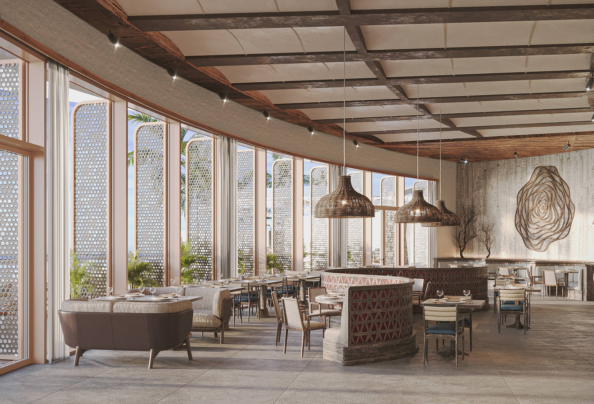 The interior design of the restaurant is guided by a concept that draws inspiration from the raw, organic texture of charcoal. This theme is expressed through carefully chosen elements that create a tactile and visual connection to the mineral essence of charcoal, blending natural aesthetics with modern sophistication.