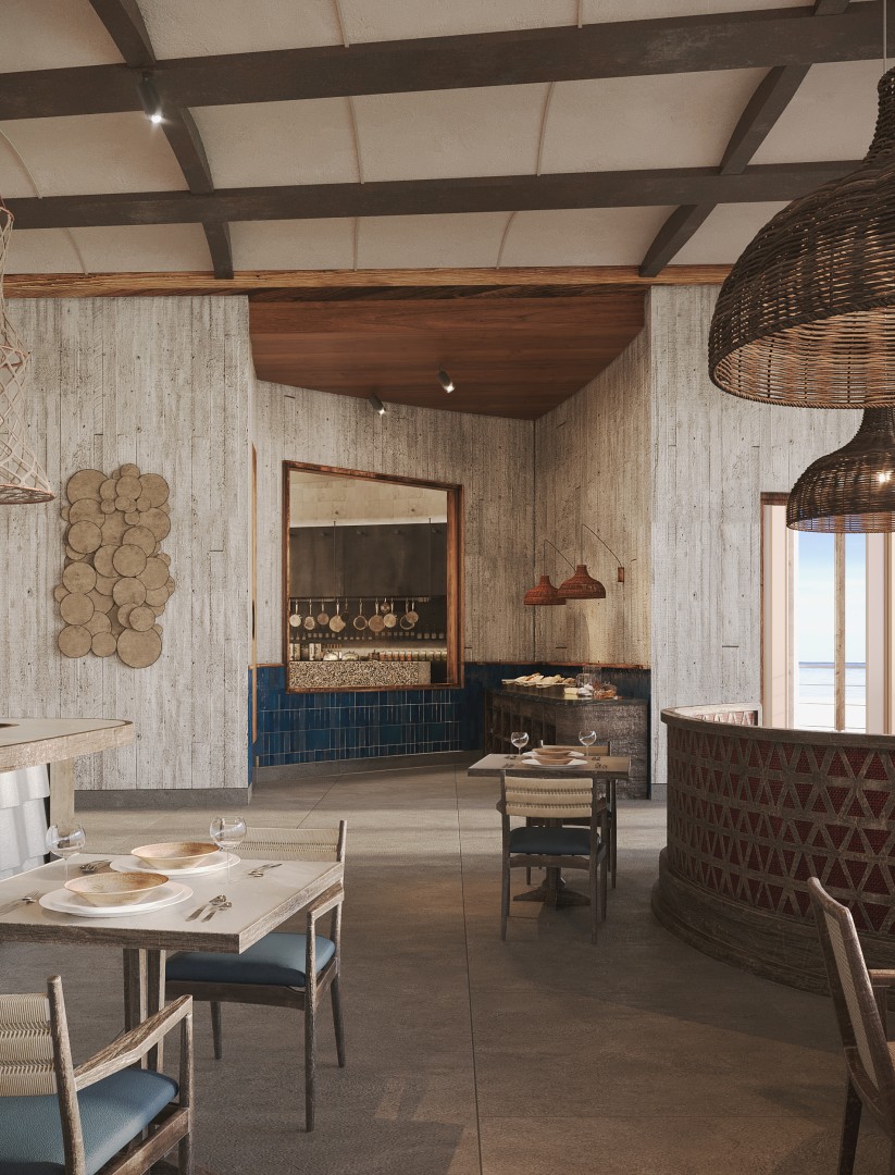 The result is an environment where the presence of charcoal and wood can be experienced both visually and tangibly, offering diners a distinctive and immersive ambiance that enhances their culinary journey.