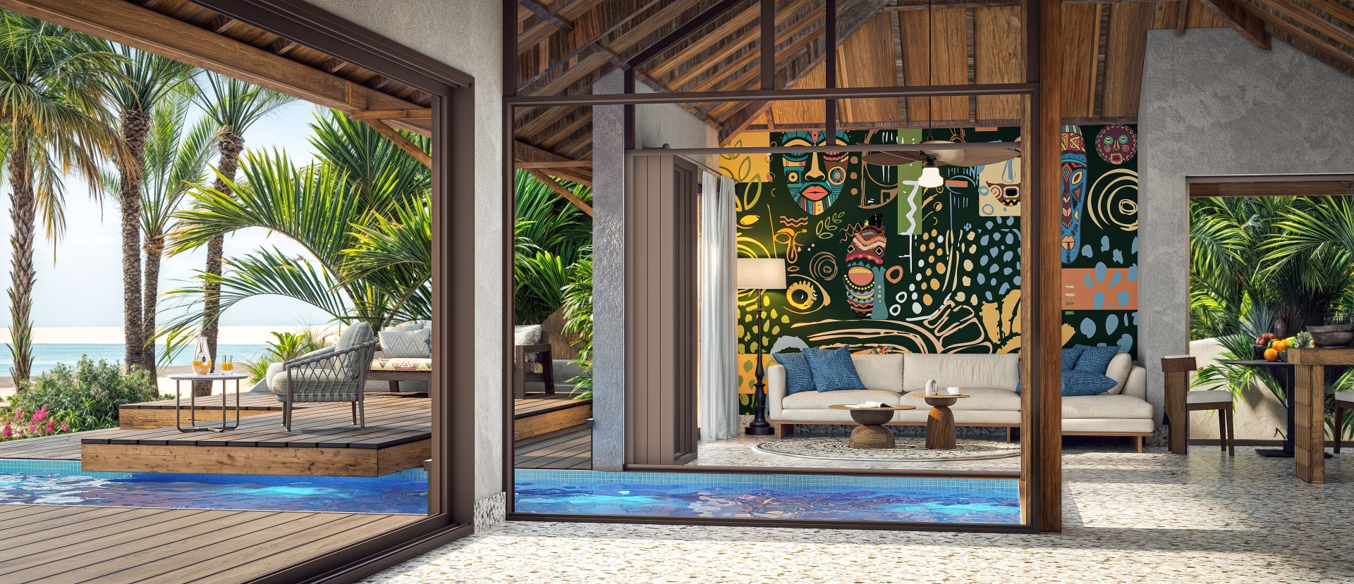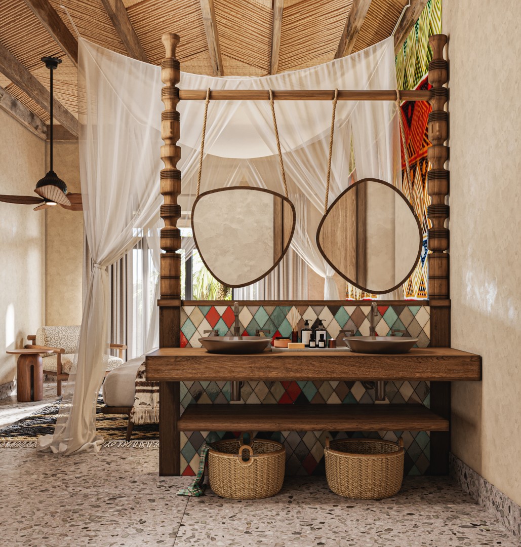 The interior design of Paje Beach Resort is a deeply immersive and thoughtfully crafted experience, drawing inspiration from the three guiding spirits of Zanzibar: Nature, Culture, and Arts & Crafts. Each space is designed to reflect these elements, creating a cohesive and authentic environment that honors the island's rich heritage while providing guests with a tranquil and luxurious escape.