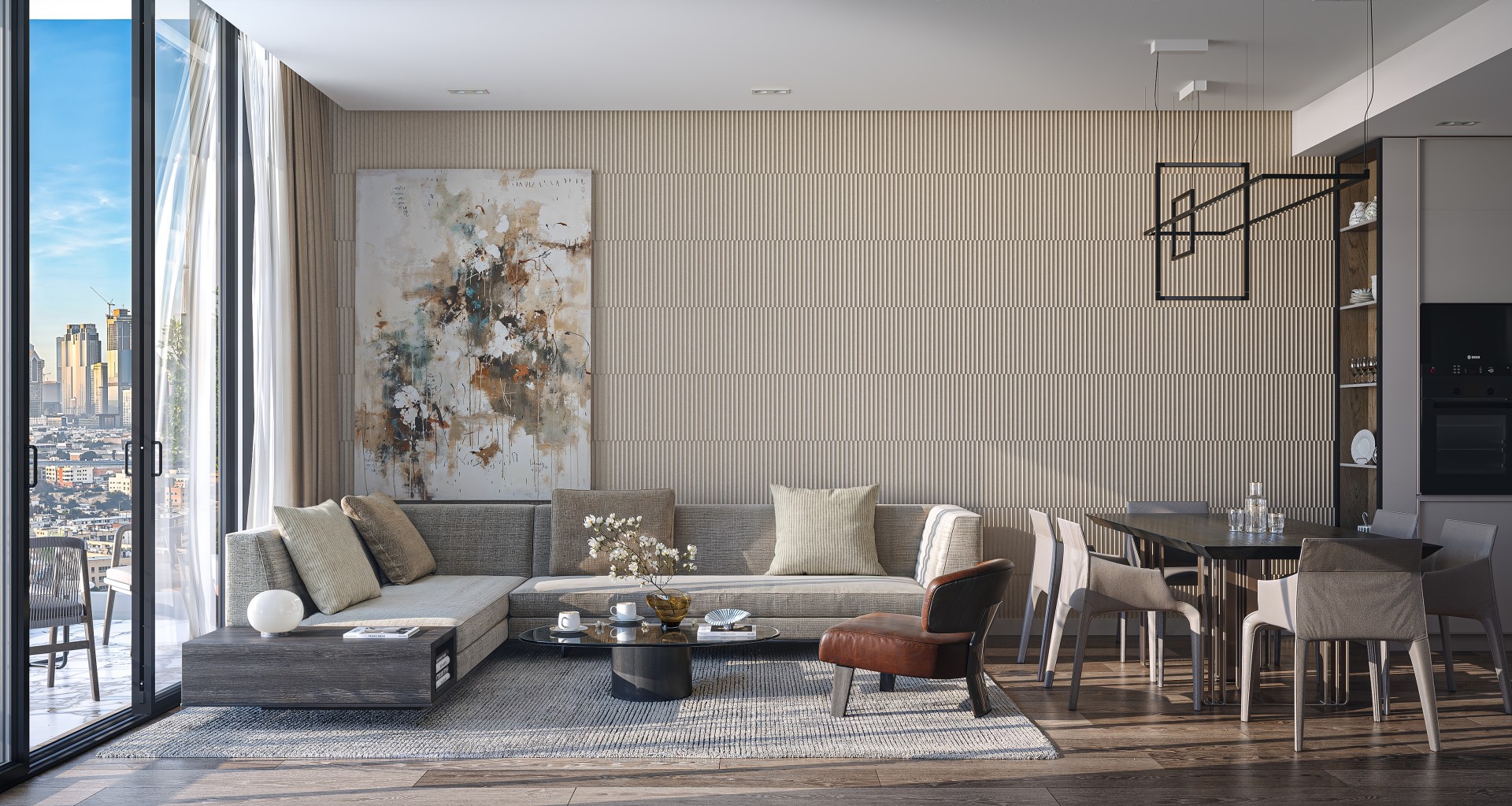 Spectrum created exterior and interior design in the Dubai Towers project. Project is planned with unique details and contextual touches. Interior design has a harmonious combination of space, materials, and intricate details.