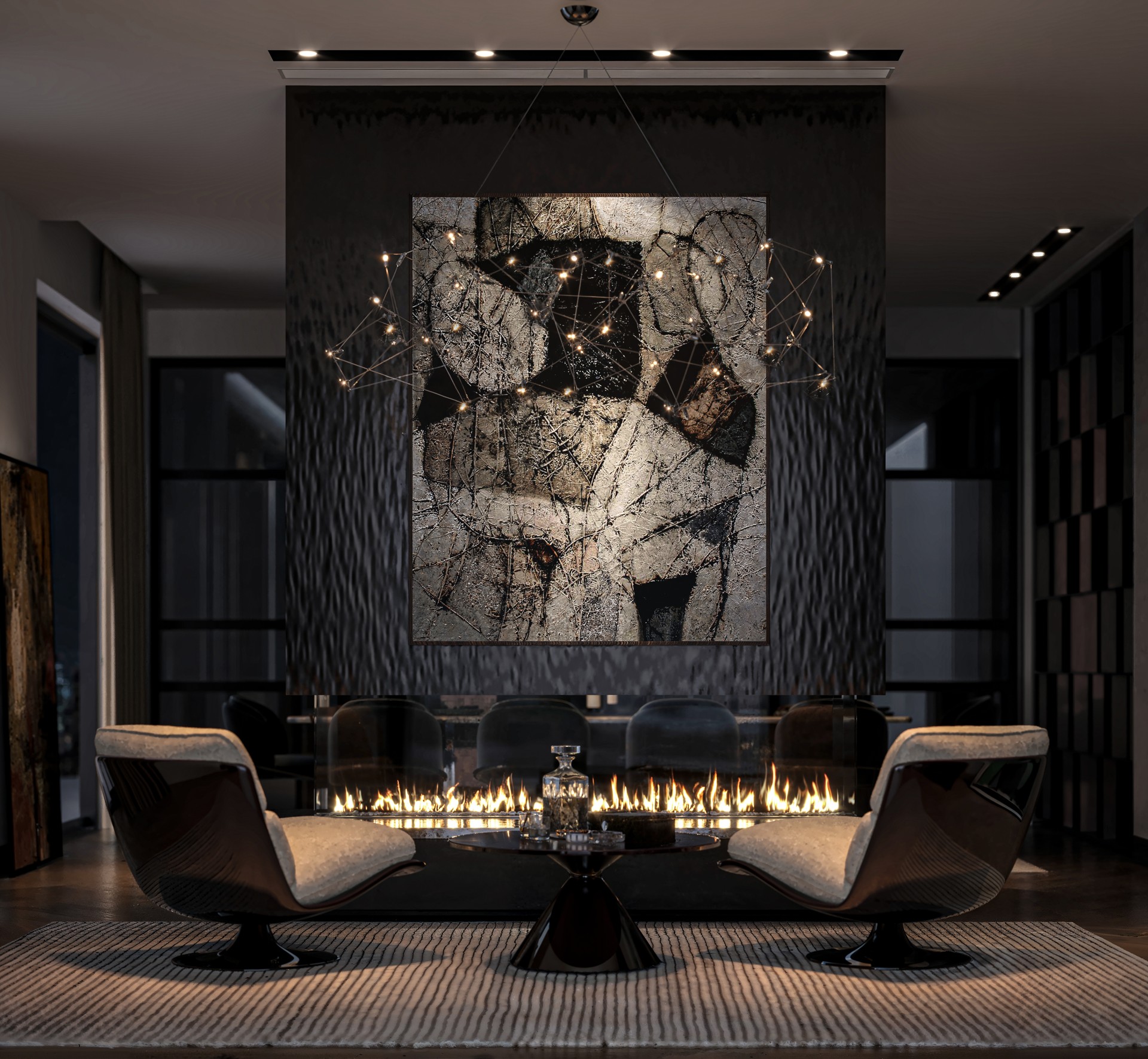 A soft and serene neutral color palette as well as a variety of stones and textures creates a deeply luxurious yet comfortable ambiance. The living space of an individual house project is tailored to the needs of the modern family with reasonably distributed layout.