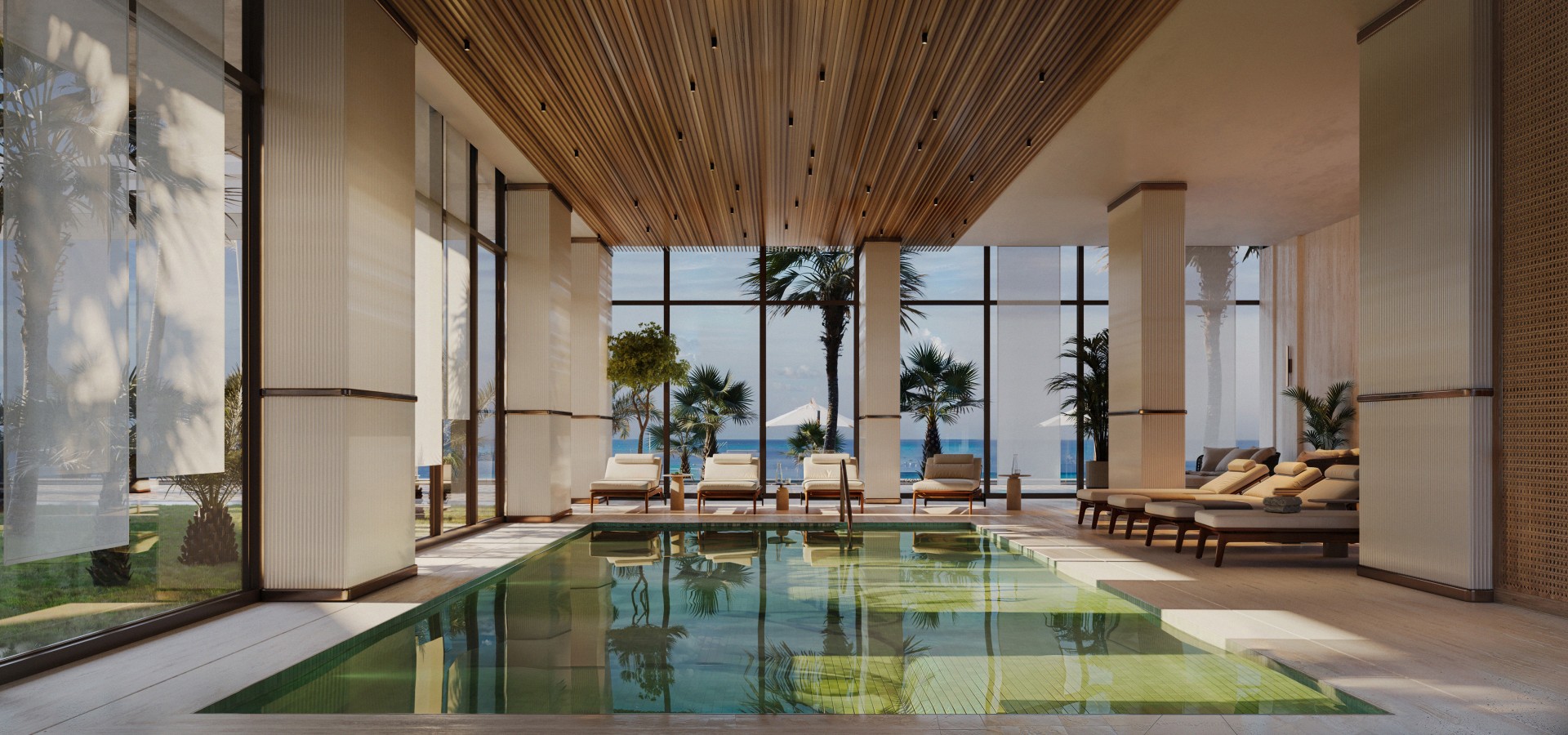 This coastal residential development is a study in refined design and thoughtful functionality. Each space has been crafted to maximize comfort, efficiency, and aesthetic harmony, while maintaining a strong dialogue with the surrounding environment. A carefully curated palette of natural materials, soothing hues, and bespoke detailing reflects both contemporary sophistication and the organic character of its coastal setting. From compact studios to expansive penthouses, every residence embodies a unique balance of lifestyle, elegance, and spatial quality.