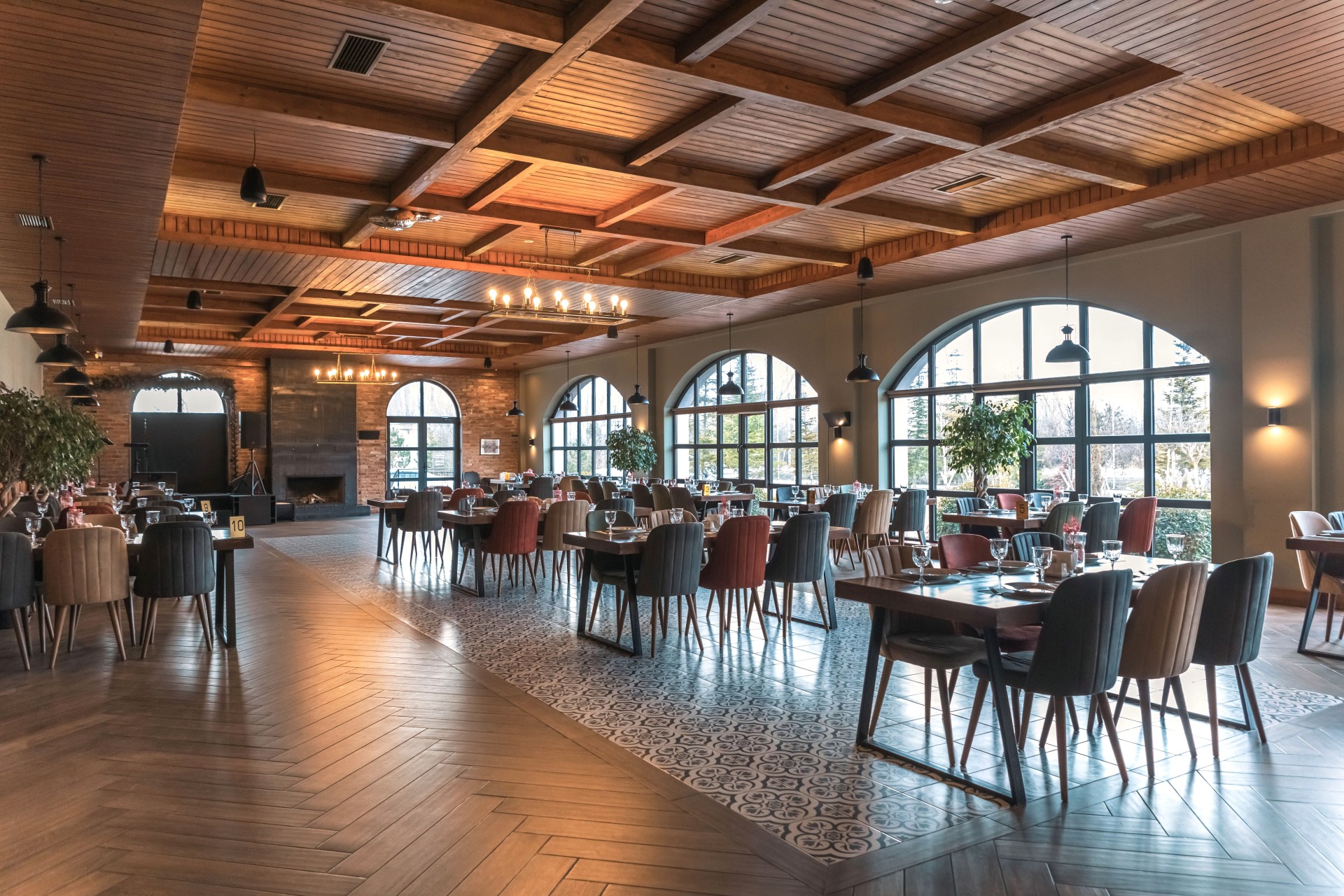 An Architectural Project That Redefines Hospitality The banquet hall offers a spacious and elegant setting for large gatherings, where warm tones and refined details continue the overall architectural project concept.