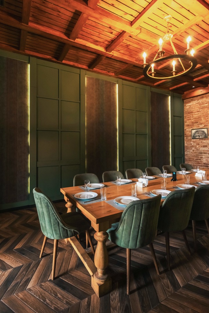 The unique interplay of materials, textures, and lighting in this architectural project creates an unforgettable first impression while making the space both comfortable and functional. The design invites guests to explore and enjoy distinctive spaces that reflect local heritage while meeting modern expectations. This restaurant in Gori is a prime example of a thoughtful and well-executed architectural project, where tradition and contemporary hospitality merge to create an unforgettable culinary and social experience.