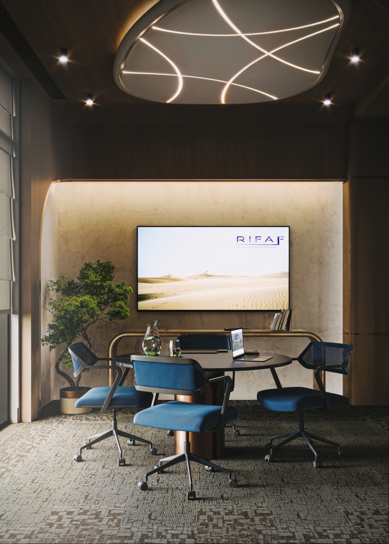 This Office Design project in Riyadh is created by the approach that highlights Rifaf’s culture, values, and commitment to excellence. Every aspect of the space is planned to inspire employees, impress clients, and support cutting-edge corporate operations. With a focus on both functionality and aesthetics, the design encourages productivity while reflecting the company’s drive for innovation.